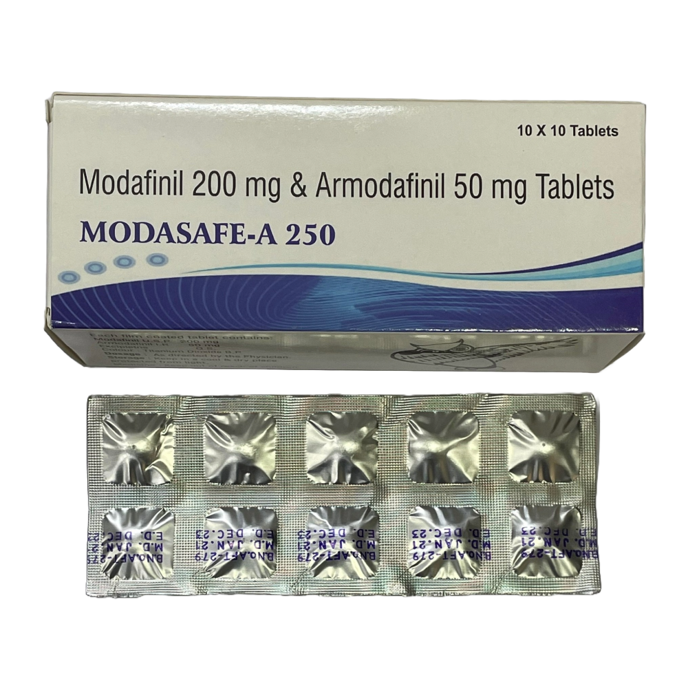 Extended Duration: With its higher dosage, Modasafe-a 250 MG offers prolonged effects, ensuring sustained energy and focus without the need for frequent doses.